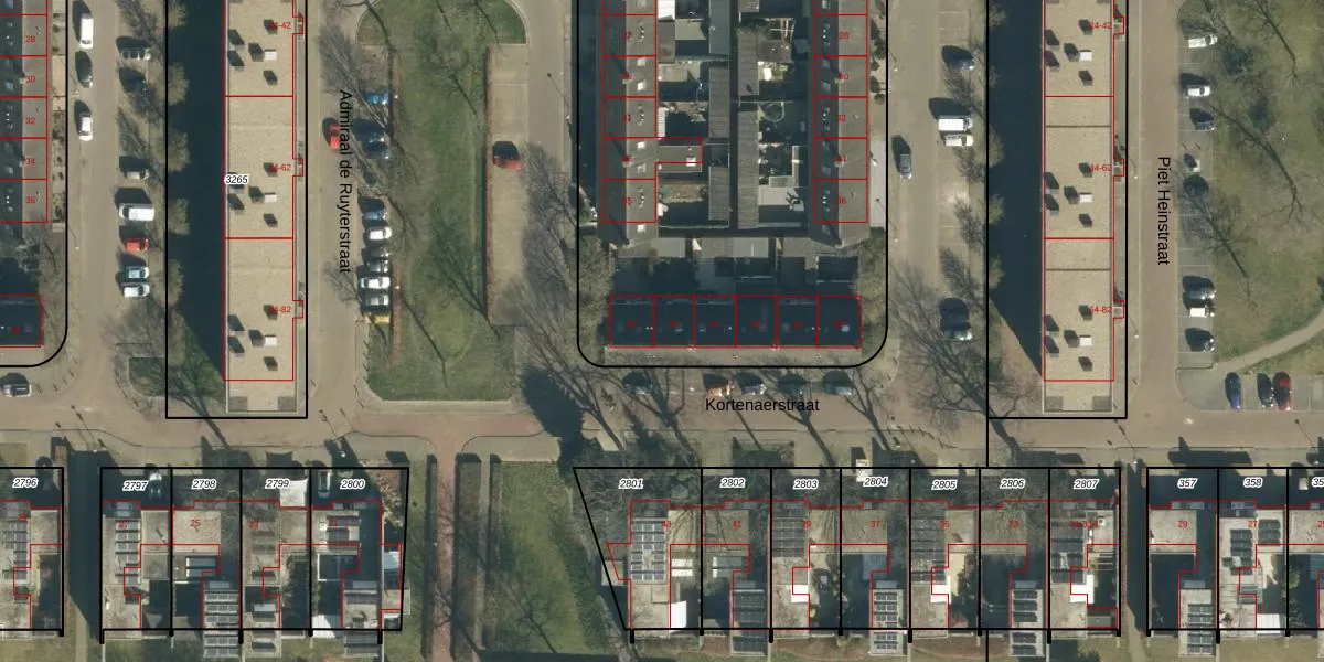 Het perceel waarop Kortenaerstraat 46 staat heeft een oppervlakte van 6144 m². Dit is een zeer groot perceel. De perceeloppervlakte wordt geregistreerd door het Kadaster. Gedetailleerde informatie over de maten van dit perceel kunt u vinden in het rapport Kadastrale kaart met maatvoering van Kortenaerstraat 46.