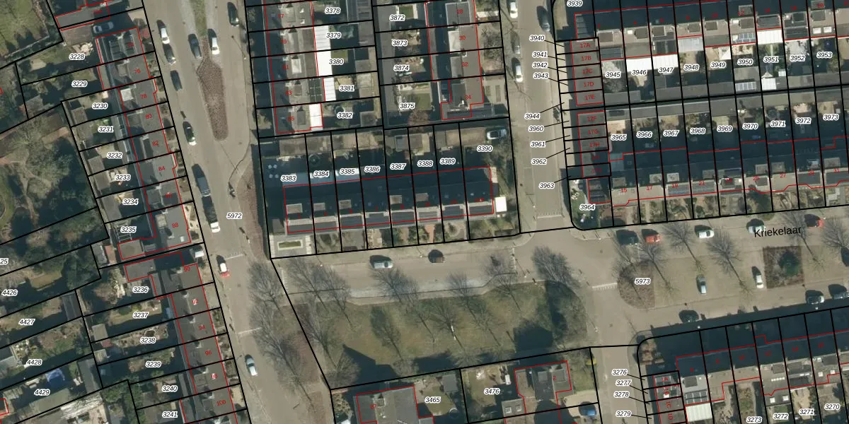 Kriekelaar 11 is gelegen op kadastraal perceel GDP00D3388. Deze kadastrale aanduiding is uniek en wordt gebruikt door het Kadaster om eigendomsrechten en andere zakelijke rechten vast te leggen. Het perceel maakt onderdeel uit van de kadastrale gemeente Geldrop.