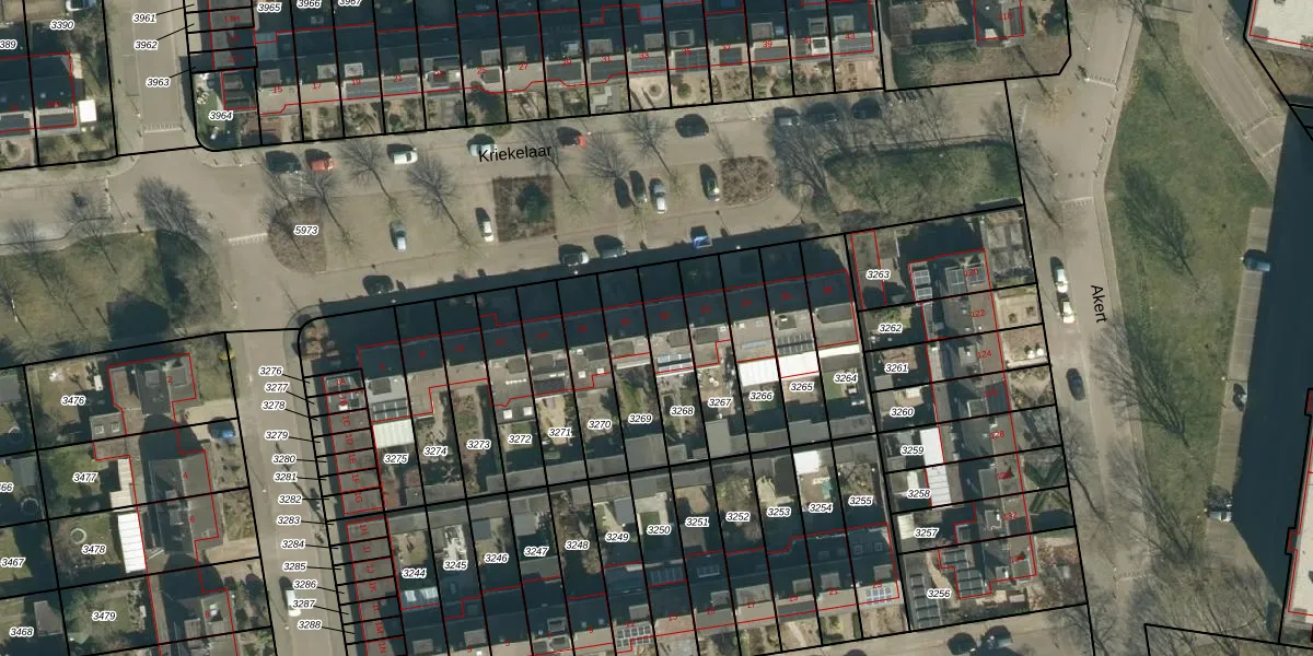 Het perceel waarop Kriekelaar 20 staat heeft een oppervlakte van 193 m². Dit is een middelgroot perceel. De perceeloppervlakte wordt geregistreerd door het Kadaster. Gedetailleerde informatie over de maten van dit perceel kunt u vinden in het rapport Kadastrale kaart met maatvoering van Kriekelaar 20.