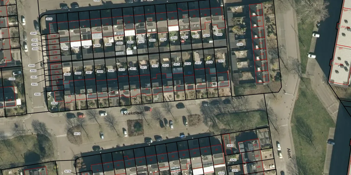 Kriekelaar 35 is gelegen op kadastraal perceel GDP00D3975. Deze kadastrale aanduiding is uniek en wordt gebruikt door het Kadaster om eigendomsrechten en andere zakelijke rechten vast te leggen. Het perceel maakt onderdeel uit van de kadastrale gemeente Geldrop.