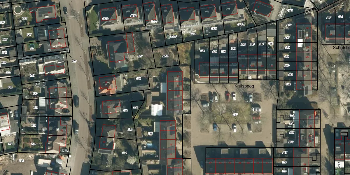 Het perceel waarop Kruisboog 11 staat heeft een oppervlakte van 2085 m². Dit is een zeer groot perceel. De perceeloppervlakte wordt geregistreerd door het Kadaster. Gedetailleerde informatie over de maten van dit perceel kunt u vinden in het rapport Kadastrale kaart met maatvoering van Kruisboog 11.