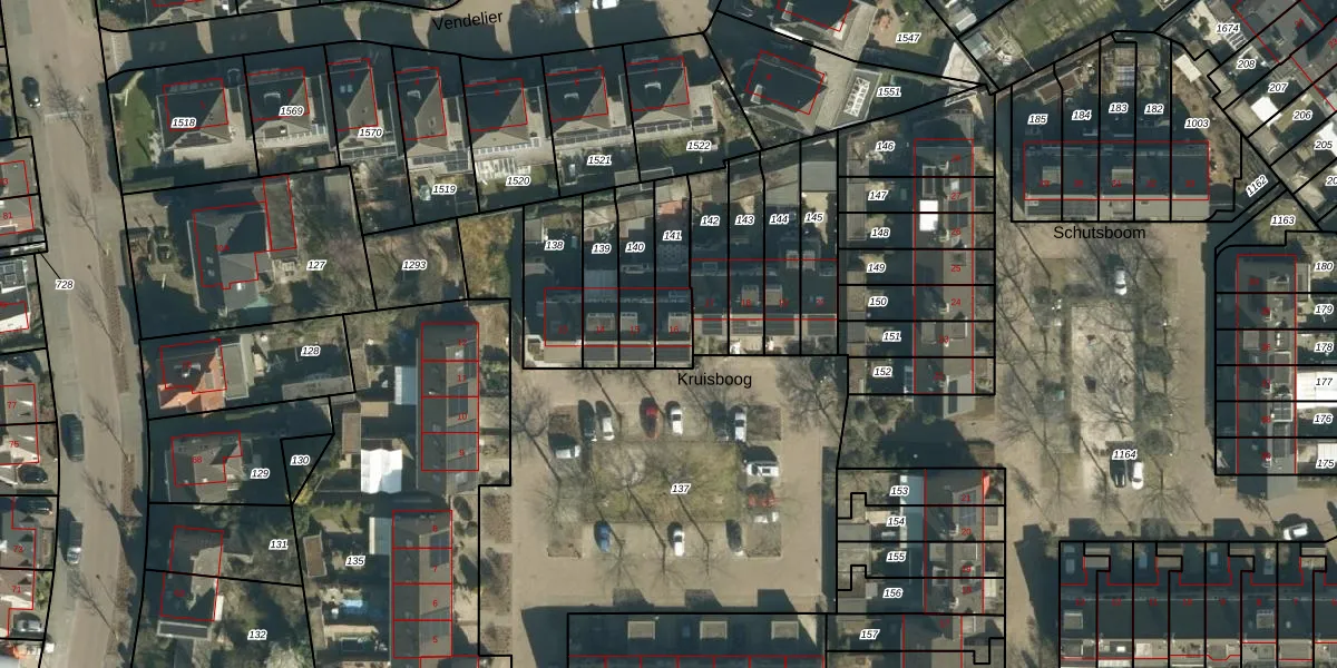 Het perceel waarop Kruisboog 16 staat heeft een oppervlakte van 157 m². Dit is een middelgroot perceel. De perceeloppervlakte wordt geregistreerd door het Kadaster. Gedetailleerde informatie over de maten van dit perceel kunt u vinden in het rapport Kadastrale kaart met maatvoering van Kruisboog 16.