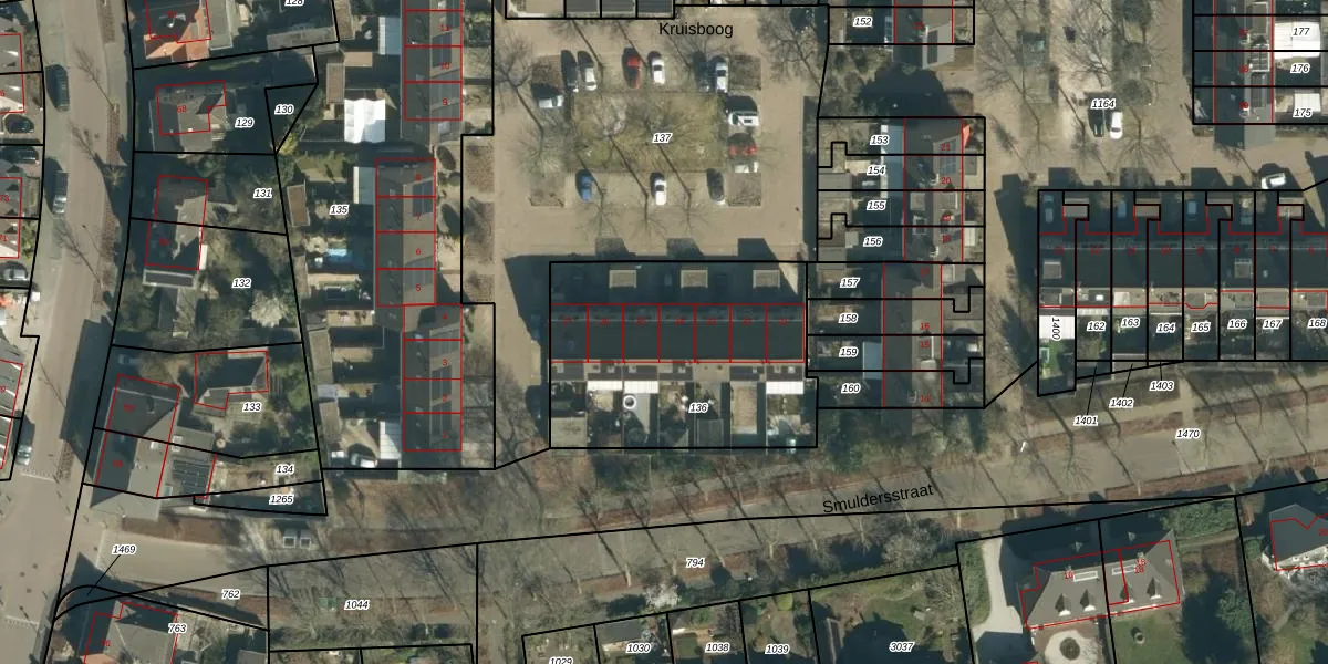 Het perceel waarop Kruisboog 24 staat heeft een oppervlakte van 1105 m². Dit is een zeer groot perceel. De perceeloppervlakte wordt geregistreerd door het Kadaster. Gedetailleerde informatie over de maten van dit perceel kunt u vinden in het rapport Kadastrale kaart met maatvoering van Kruisboog 24.