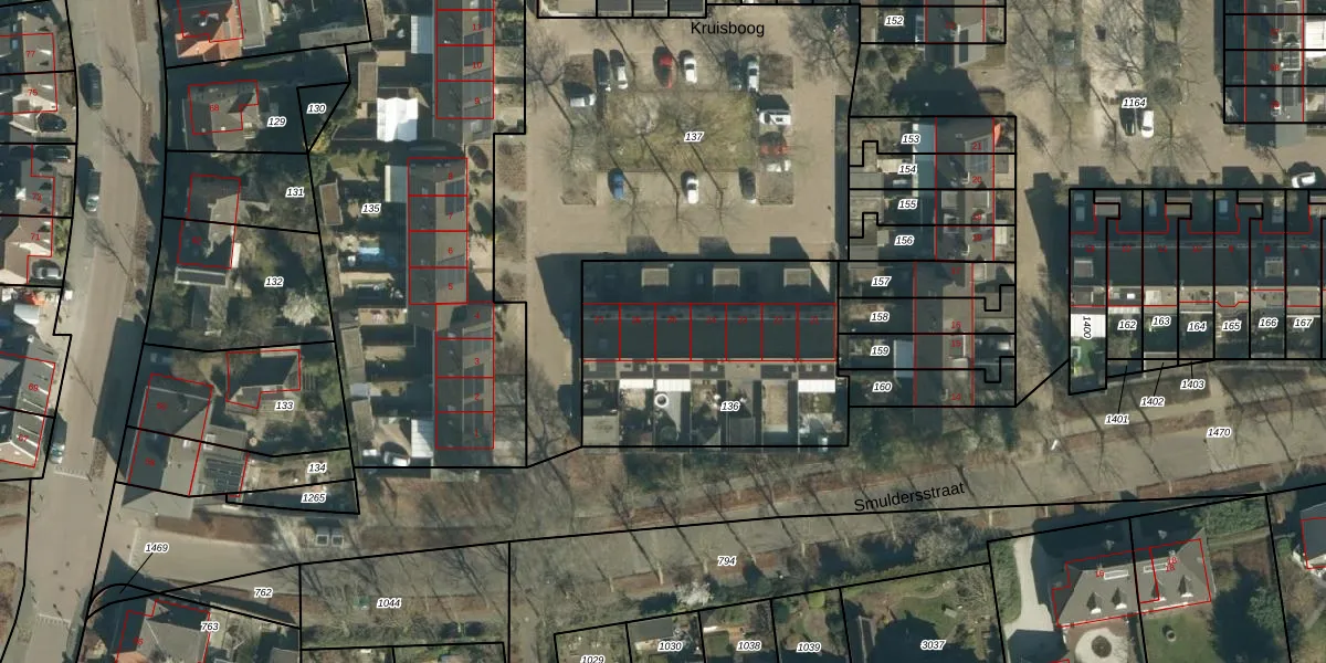 Het perceel waarop Kruisboog 25 staat heeft een oppervlakte van 1105 m². Dit is een zeer groot perceel. De perceeloppervlakte wordt geregistreerd door het Kadaster. Gedetailleerde informatie over de maten van dit perceel kunt u vinden in het rapport Kadastrale kaart met maatvoering van Kruisboog 25.