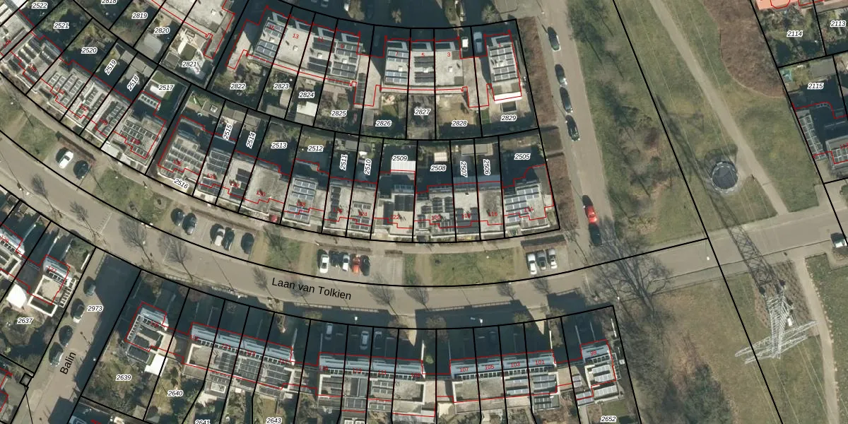 Laan van Tolkien 120 is gelegen op kadastraal perceel GDP00E2508. Deze kadastrale aanduiding is uniek en wordt gebruikt door het Kadaster om eigendomsrechten en andere zakelijke rechten vast te leggen. Het perceel maakt onderdeel uit van de kadastrale gemeente Geldrop.