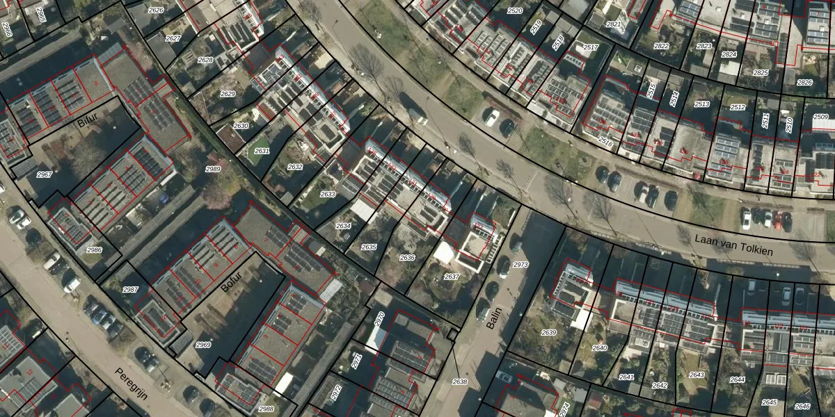 Gebruik de zoekbalk of klik op een perceel voor informatie over de adressen binnen dit perceel.
