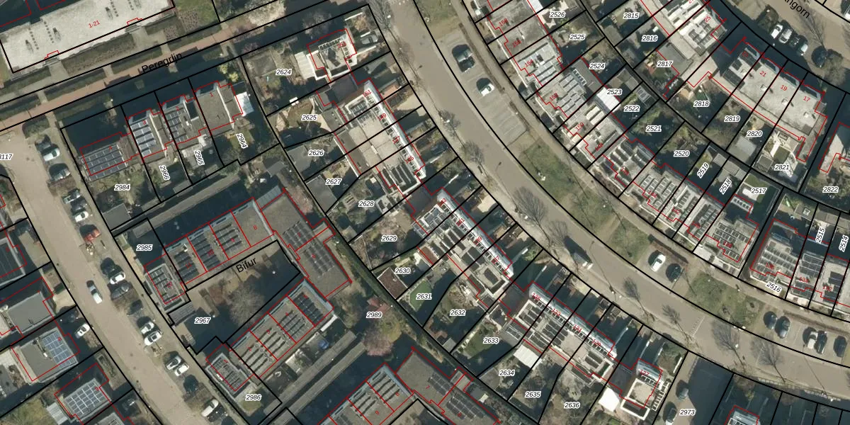 Gebruik de zoekbalk of klik op een perceel voor informatie over de adressen binnen dit perceel.