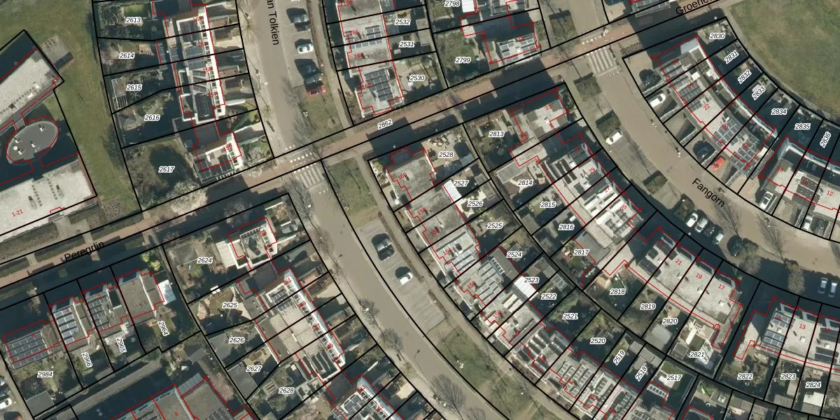 Gebruik de zoekbalk of klik op een perceel voor informatie over de adressen binnen dit perceel.