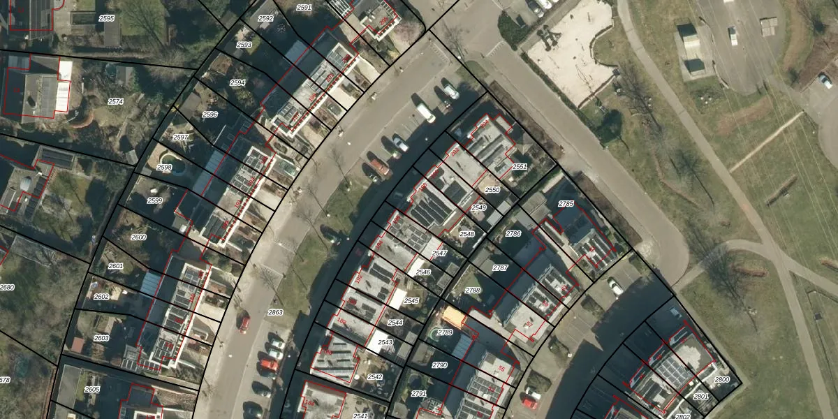 Gebruik de zoekbalk of klik op een perceel voor informatie over de adressen binnen dit perceel.