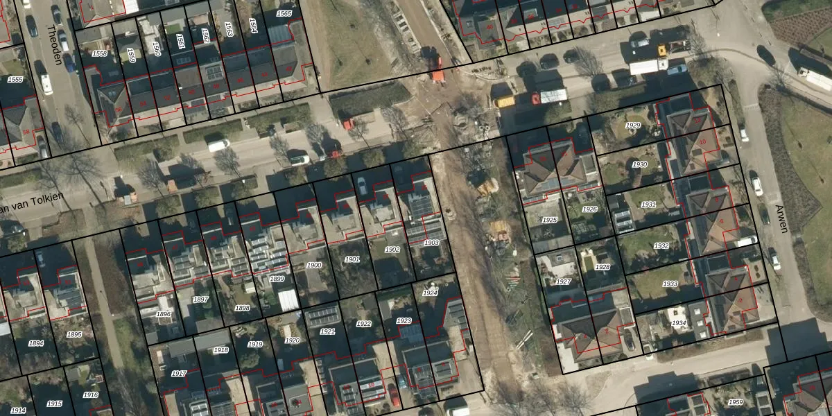 Gebruik de zoekbalk of klik op een perceel voor informatie over de adressen binnen dit perceel.