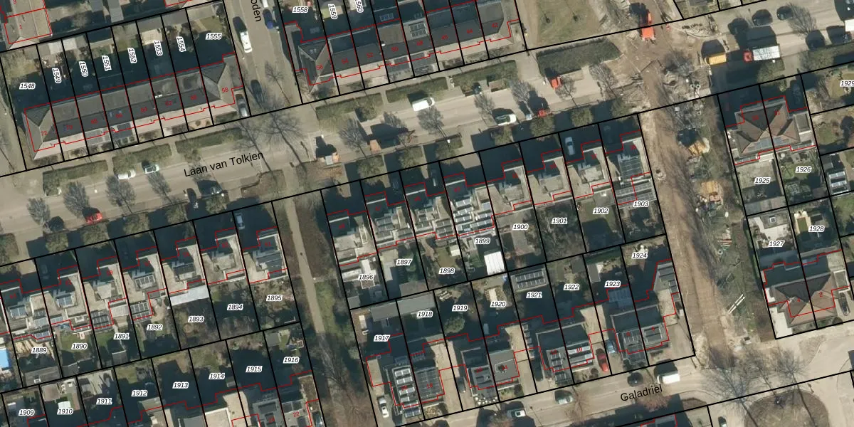 Laan van Tolkien 45 is gelegen op kadastraal perceel GDP00E1898. Deze kadastrale aanduiding is uniek en wordt gebruikt door het Kadaster om eigendomsrechten en andere zakelijke rechten vast te leggen. Het perceel maakt onderdeel uit van de kadastrale gemeente Geldrop.
