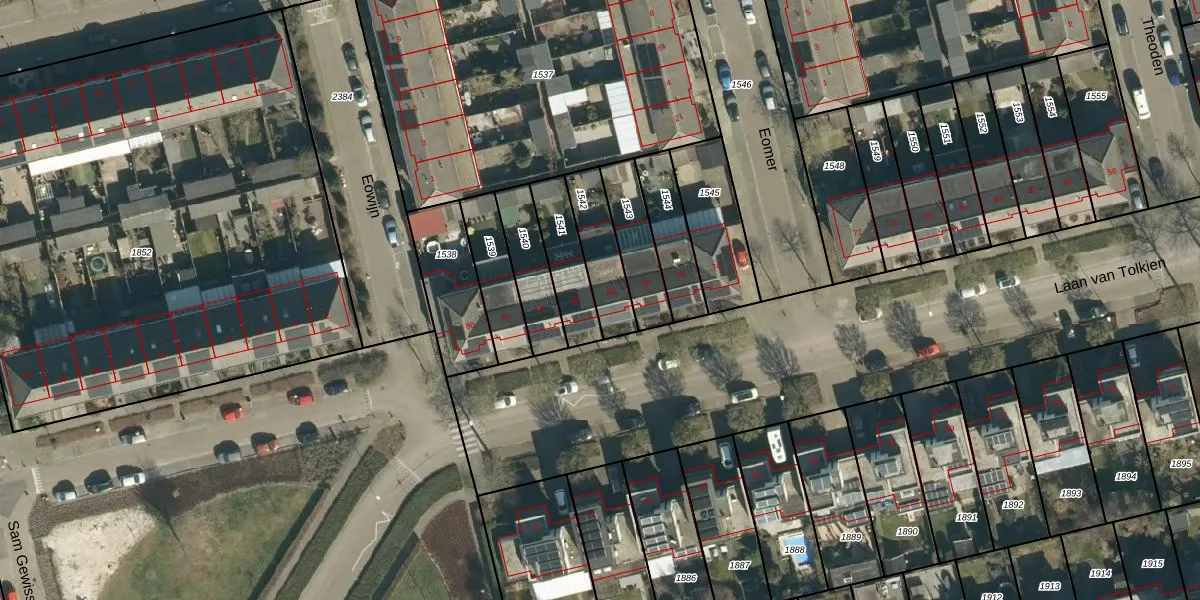 Gebruik de zoekbalk of klik op een perceel voor informatie over de adressen binnen dit perceel.