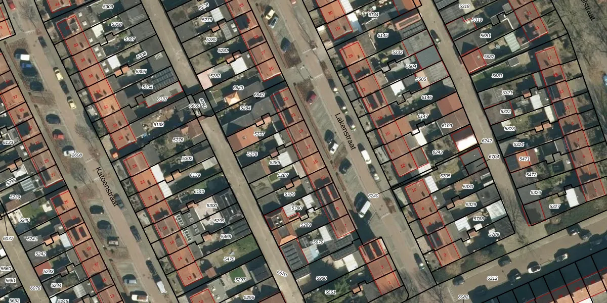 Gebruik de zoekbalk of klik op een perceel voor informatie over de adressen binnen dit perceel.