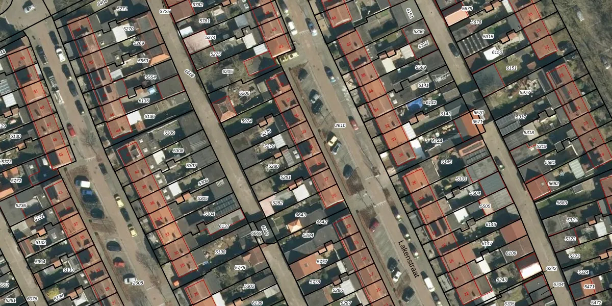 Gebruik de zoekbalk of klik op een perceel voor informatie over de adressen binnen dit perceel.