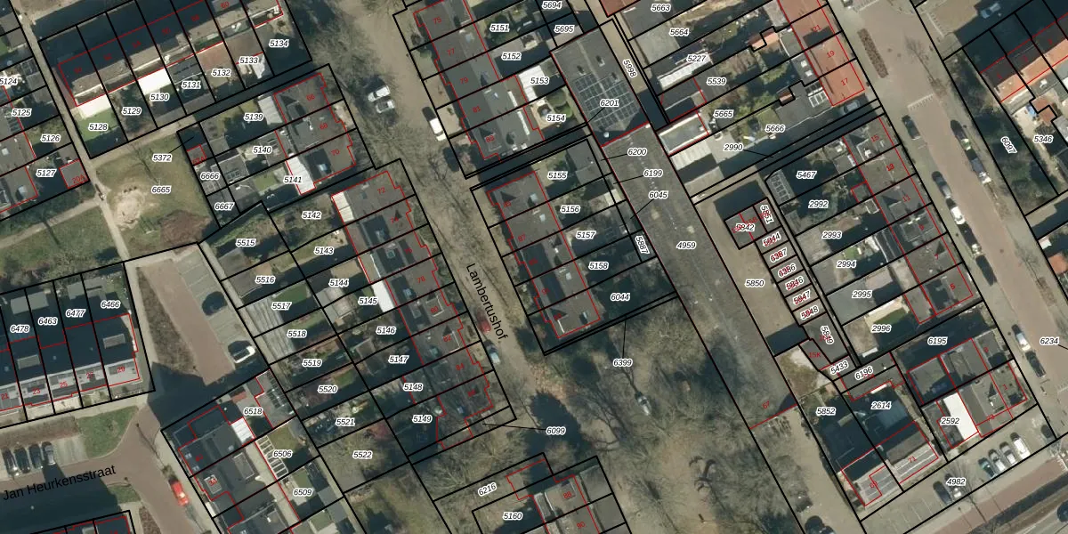 Het perceel waarop Lambertushof 89 staat heeft een oppervlakte van 142 m². Dit is een middelgroot perceel. De perceeloppervlakte wordt geregistreerd door het Kadaster. Gedetailleerde informatie over de maten van dit perceel kunt u vinden in het rapport Kadastrale kaart met maatvoering van Lambertushof 89.