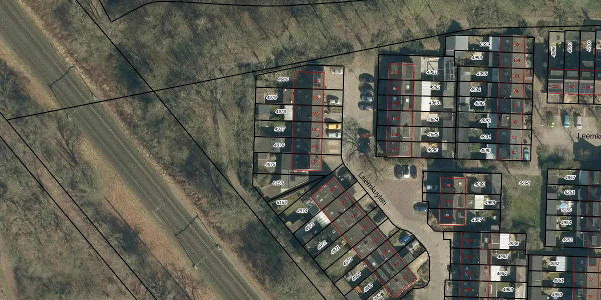 Leemkuylen 129 is gelegen op kadastraal perceel GDP00D4976. Deze kadastrale aanduiding is uniek en wordt gebruikt door het Kadaster om eigendomsrechten en andere zakelijke rechten vast te leggen. Het perceel maakt onderdeel uit van de kadastrale gemeente Geldrop.