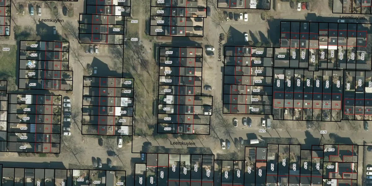 Leemkuylen 41 is gelegen op kadastraal perceel GDP00D5099. Deze kadastrale aanduiding is uniek en wordt gebruikt door het Kadaster om eigendomsrechten en andere zakelijke rechten vast te leggen. Het perceel maakt onderdeel uit van de kadastrale gemeente Geldrop.
