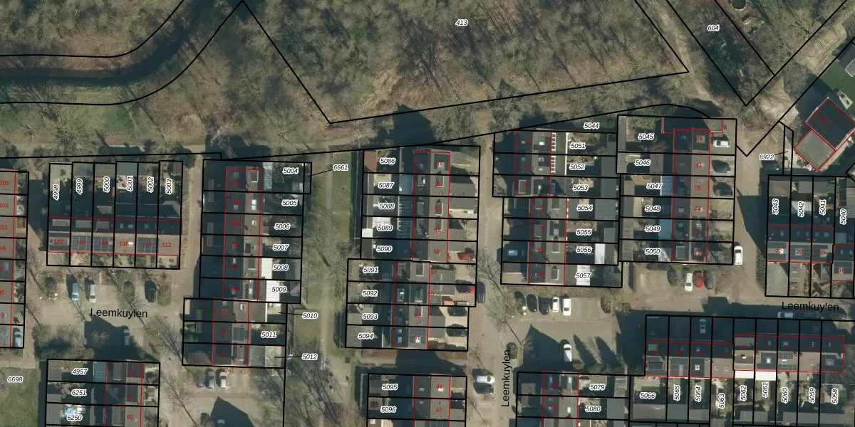 Leemkuylen 63 is gelegen op kadastraal perceel GDP00D5088. Deze kadastrale aanduiding is uniek en wordt gebruikt door het Kadaster om eigendomsrechten en andere zakelijke rechten vast te leggen. Het perceel maakt onderdeel uit van de kadastrale gemeente Geldrop.