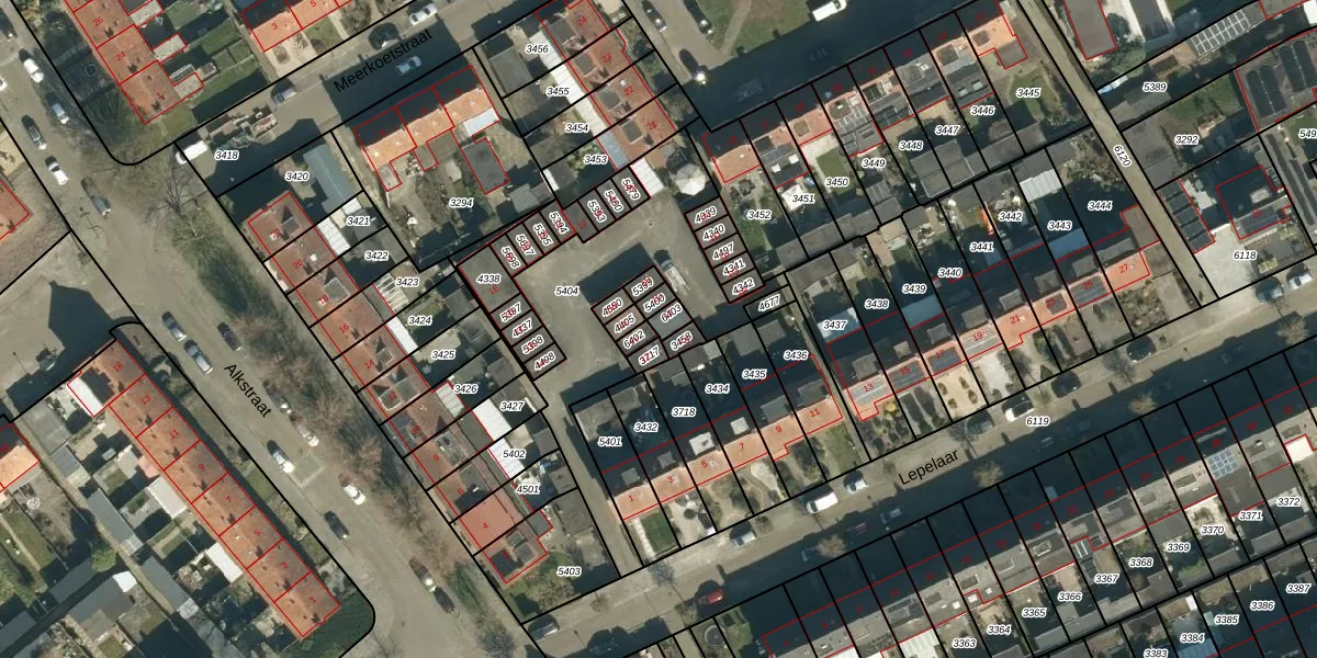 Gebruik de zoekbalk of klik op een perceel voor informatie over de adressen binnen dit perceel.