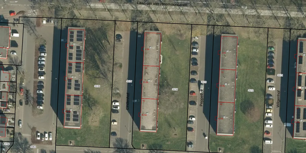 Het perceel waarop Lindenhof 27 staat heeft een oppervlakte van 2950 m². Dit is een zeer groot perceel. De perceeloppervlakte wordt geregistreerd door het Kadaster. Gedetailleerde informatie over de maten van dit perceel kunt u vinden in het rapport Kadastrale kaart met maatvoering van Lindenhof 27.
