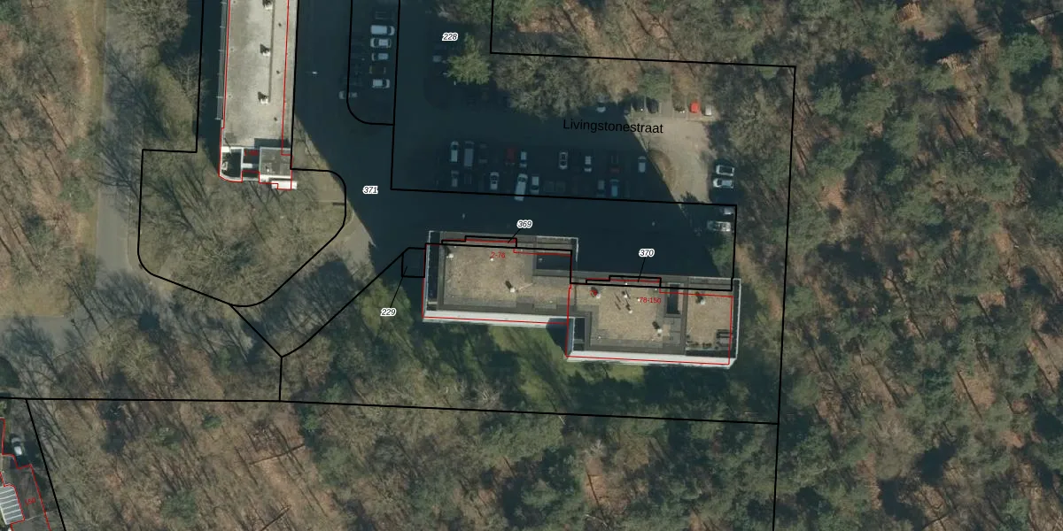 Het perceel waarop Livingstonestraat 12 staat heeft een oppervlakte van 5865 m². Dit is een zeer groot perceel. De perceeloppervlakte wordt geregistreerd door het Kadaster. Gedetailleerde informatie over de maten van dit perceel kunt u vinden in het rapport Kadastrale kaart met maatvoering van Livingstonestraat 12.