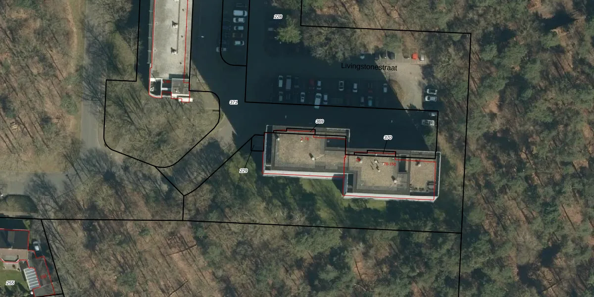 Het perceel waarop Livingstonestraat 22 staat heeft een oppervlakte van 5865 m². Dit is een zeer groot perceel. De perceeloppervlakte wordt geregistreerd door het Kadaster. Gedetailleerde informatie over de maten van dit perceel kunt u vinden in het rapport Kadastrale kaart met maatvoering van Livingstonestraat 22.