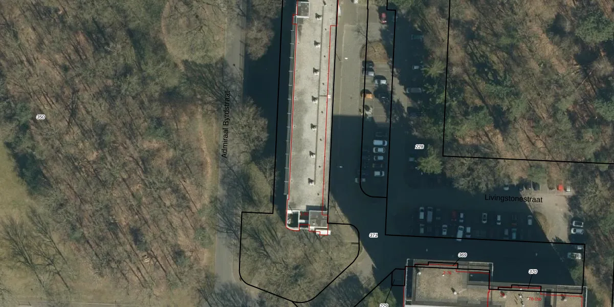 Het perceel waarop Livingstonestraat 53 staat heeft een oppervlakte van 7575 m². Dit is een zeer groot perceel. De perceeloppervlakte wordt geregistreerd door het Kadaster. Gedetailleerde informatie over de maten van dit perceel kunt u vinden in het rapport Kadastrale kaart met maatvoering van Livingstonestraat 53.