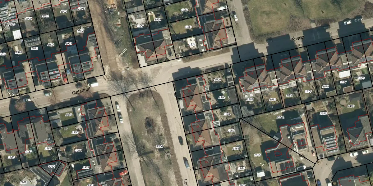 Het perceel waarop Lorien 19 staat heeft een oppervlakte van 314 m². Dit is een groot perceel. De perceeloppervlakte wordt geregistreerd door het Kadaster. Gedetailleerde informatie over de maten van dit perceel kunt u vinden in het rapport Kadastrale kaart met maatvoering van Lorien 19.