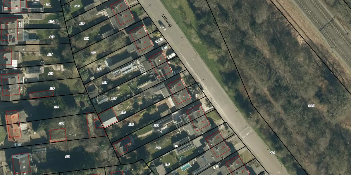 Losweg 38 is gelegen op kadastraal perceel GDP00K223. Deze kadastrale aanduiding is uniek en wordt gebruikt door het Kadaster om eigendomsrechten en andere zakelijke rechten vast te leggen. Het perceel maakt onderdeel uit van de kadastrale gemeente Geldrop.