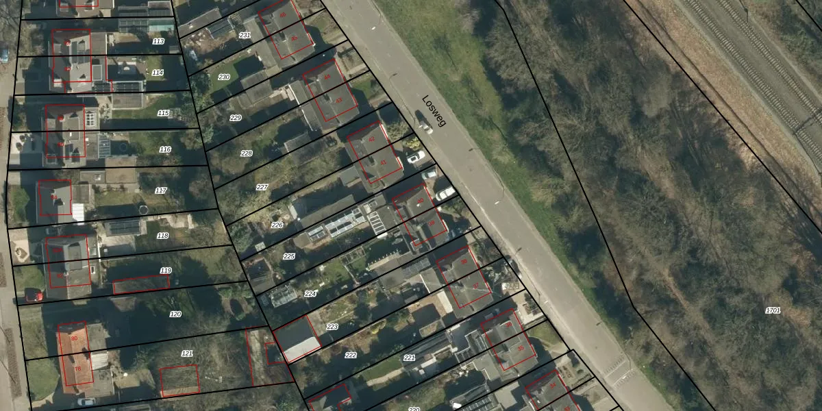 Het perceel waarop Losweg 40 staat heeft een oppervlakte van 503 m². Dit is een groot perceel. De perceeloppervlakte wordt geregistreerd door het Kadaster. Gedetailleerde informatie over de maten van dit perceel kunt u vinden in het rapport Kadastrale kaart met maatvoering van Losweg 40.