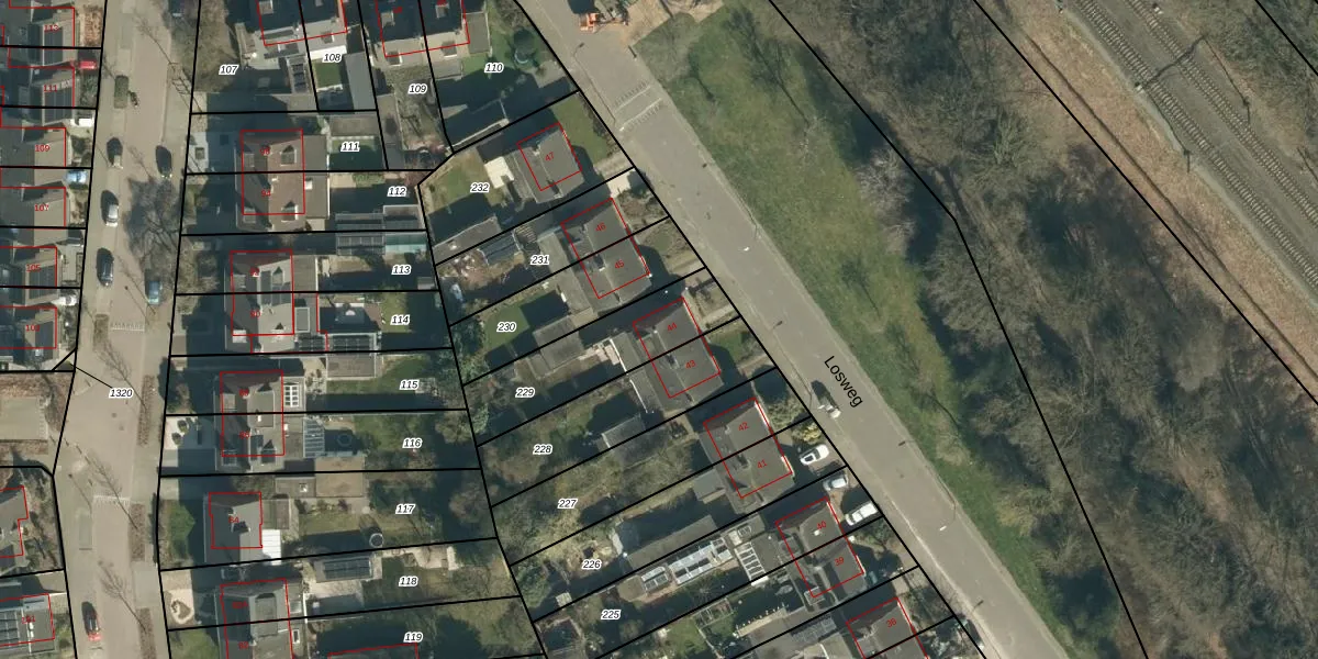 Het perceel waarop Losweg 44 staat heeft een oppervlakte van 393 m². Dit is een groot perceel. De perceeloppervlakte wordt geregistreerd door het Kadaster. Gedetailleerde informatie over de maten van dit perceel kunt u vinden in het rapport Kadastrale kaart met maatvoering van Losweg 44.