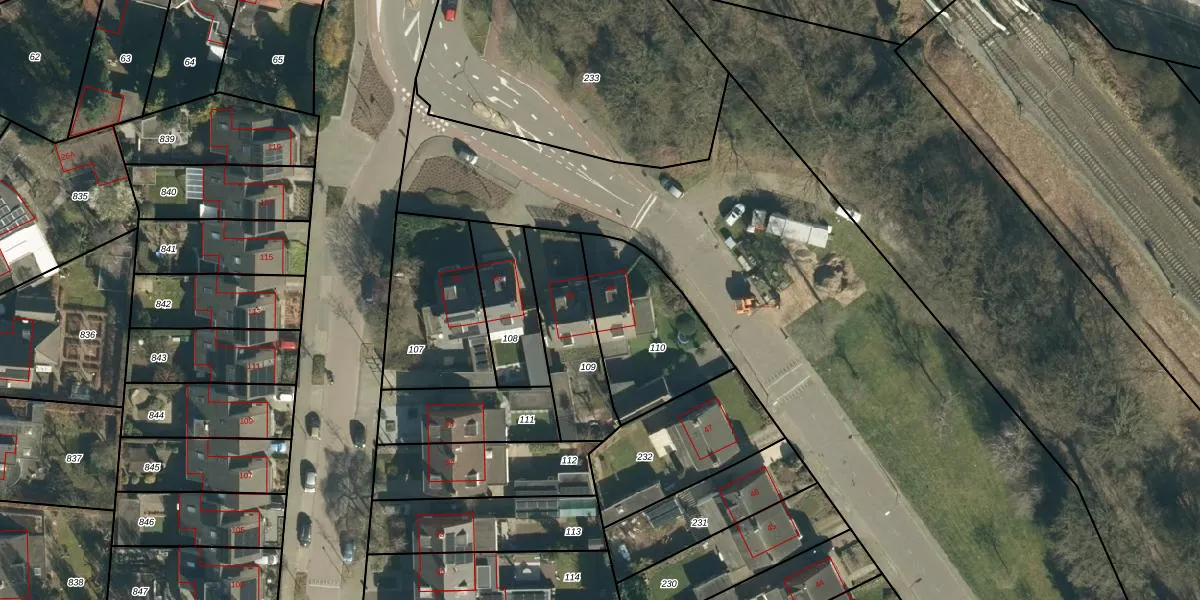Gebruik de zoekbalk of klik op een perceel voor informatie over de adressen binnen dit perceel.