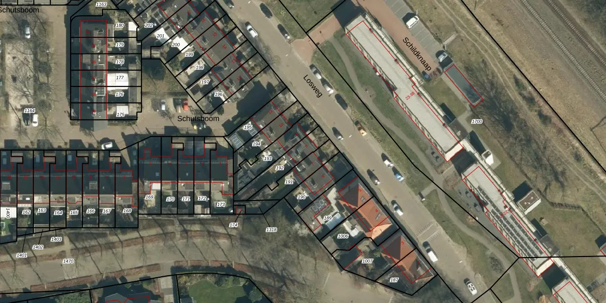 Het perceel waarop Losweg 8 staat heeft een oppervlakte van 187 m². Dit is een middelgroot perceel. De perceeloppervlakte wordt geregistreerd door het Kadaster. Gedetailleerde informatie over de maten van dit perceel kunt u vinden in het rapport Kadastrale kaart met maatvoering van Losweg 8.