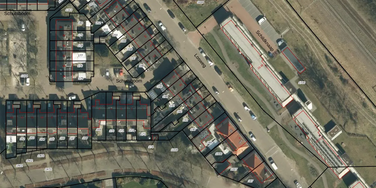 Het perceel waarop Losweg 9 staat heeft een oppervlakte van 187 m². Dit is een middelgroot perceel. De perceeloppervlakte wordt geregistreerd door het Kadaster. Gedetailleerde informatie over de maten van dit perceel kunt u vinden in het rapport Kadastrale kaart met maatvoering van Losweg 9.