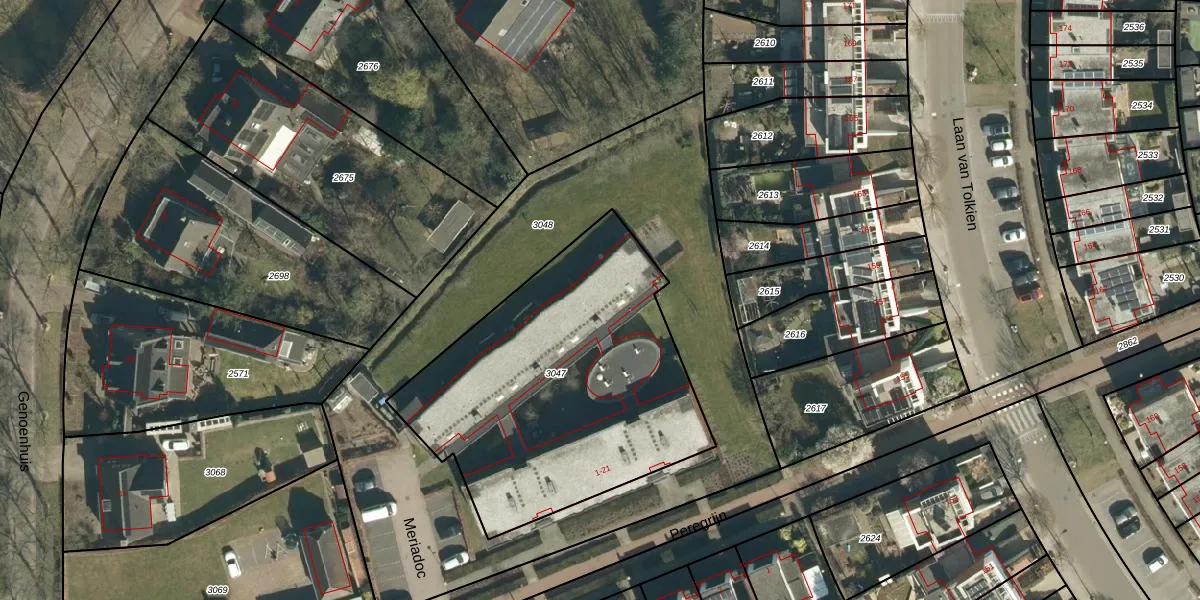 Het perceel waarop Meriadoc 20 staat heeft een oppervlakte van 1595 m². Dit is een zeer groot perceel. De perceeloppervlakte wordt geregistreerd door het Kadaster. Gedetailleerde informatie over de maten van dit perceel kunt u vinden in het rapport Kadastrale kaart met maatvoering van Meriadoc 20.