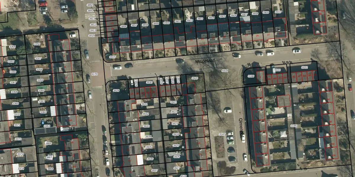 Gebruik de zoekbalk of klik op een perceel voor informatie over de adressen binnen dit perceel.