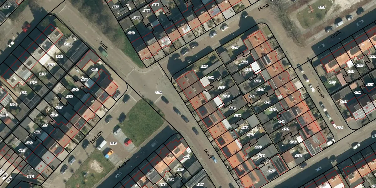 Het perceel waarop Munt 24 staat heeft een oppervlakte van 177 m². Dit is een middelgroot perceel. De perceeloppervlakte wordt geregistreerd door het Kadaster. Gedetailleerde informatie over de maten van dit perceel kunt u vinden in het rapport Kadastrale kaart met maatvoering van Munt 24.