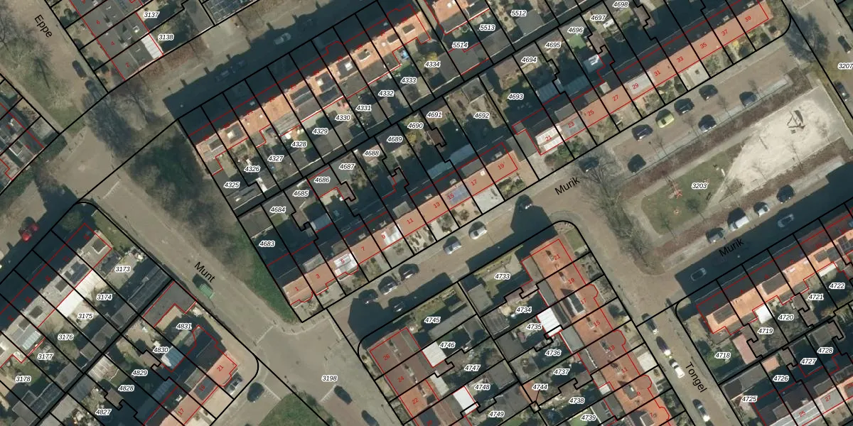 Het perceel waarop Murik 13 staat heeft een oppervlakte van 180 m². Dit is een middelgroot perceel. De perceeloppervlakte wordt geregistreerd door het Kadaster. Gedetailleerde informatie over de maten van dit perceel kunt u vinden in het rapport Kadastrale kaart met maatvoering van Murik 13.