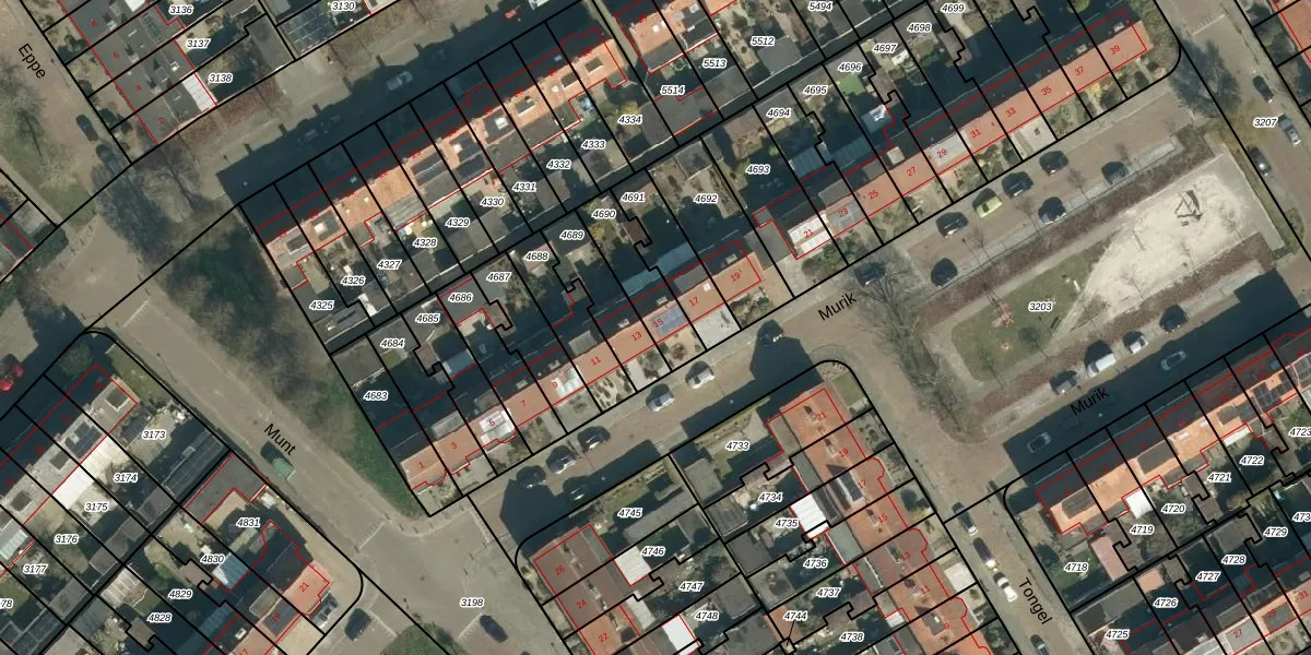 Het perceel waarop Murik 15 staat heeft een oppervlakte van 181 m². Dit is een middelgroot perceel. De perceeloppervlakte wordt geregistreerd door het Kadaster. Gedetailleerde informatie over de maten van dit perceel kunt u vinden in het rapport Kadastrale kaart met maatvoering van Murik 15.