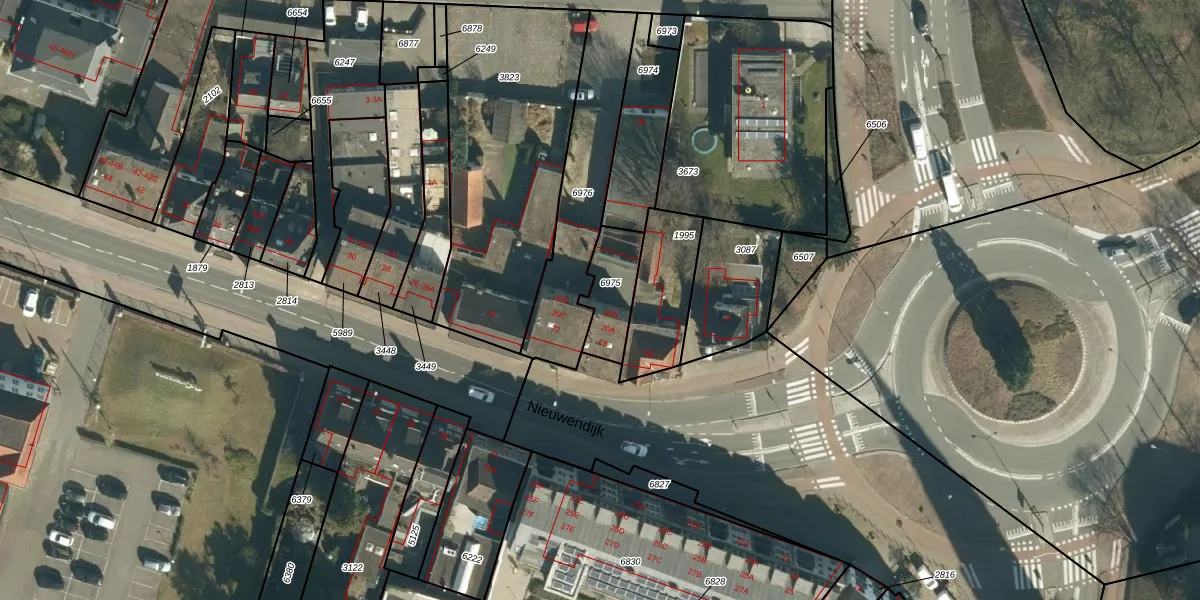 Nieuwendijk 20-A is gelegen op kadastraal perceel GDP00D6975. Deze kadastrale aanduiding is uniek en wordt gebruikt door het Kadaster om eigendomsrechten en andere zakelijke rechten vast te leggen. Het perceel maakt onderdeel uit van de kadastrale gemeente Geldrop.