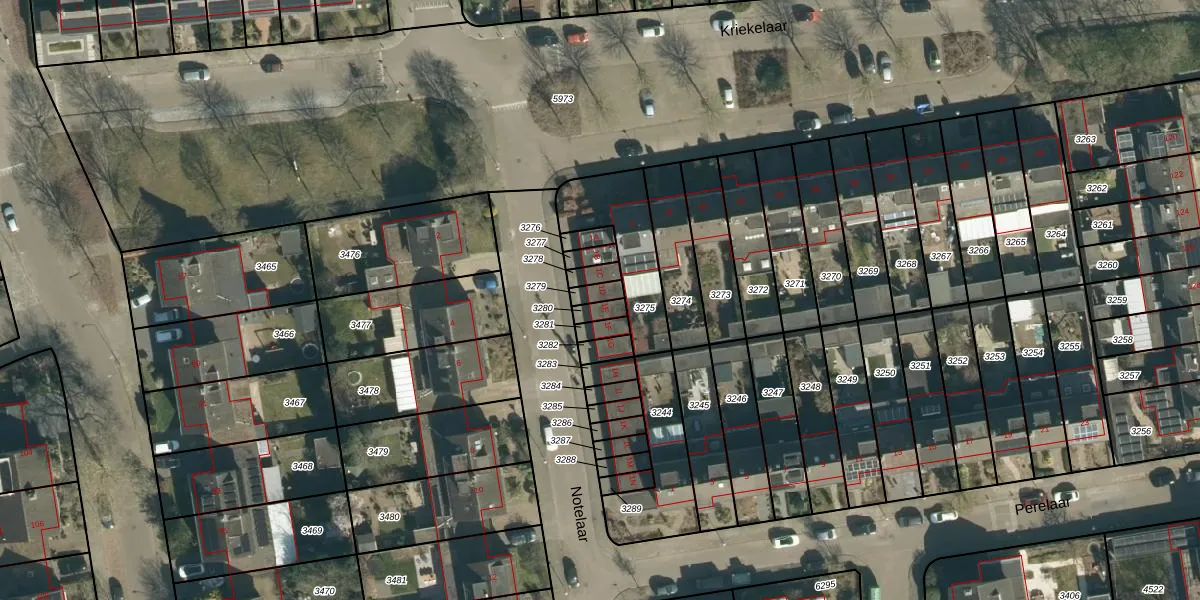 Het perceel waarop Notelaar 1-D staat heeft een oppervlakte van 28 m². Dit is een klein perceel. De perceeloppervlakte wordt geregistreerd door het Kadaster. Gedetailleerde informatie over de maten van dit perceel kunt u vinden in het rapport Kadastrale kaart met maatvoering van Notelaar 1-D.