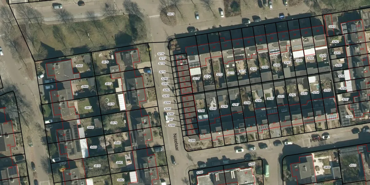 Het perceel waarop Notelaar 1-G staat heeft een oppervlakte van 37 m². Dit is een klein perceel. De perceeloppervlakte wordt geregistreerd door het Kadaster. Gedetailleerde informatie over de maten van dit perceel kunt u vinden in het rapport Kadastrale kaart met maatvoering van Notelaar 1-G.