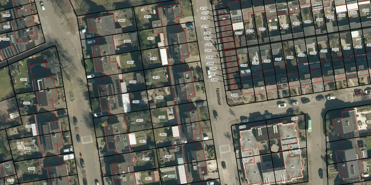 Het perceel waarop Notelaar 10 staat heeft een oppervlakte van 334 m². Dit is een groot perceel. De perceeloppervlakte wordt geregistreerd door het Kadaster. Gedetailleerde informatie over de maten van dit perceel kunt u vinden in het rapport Kadastrale kaart met maatvoering van Notelaar 10.