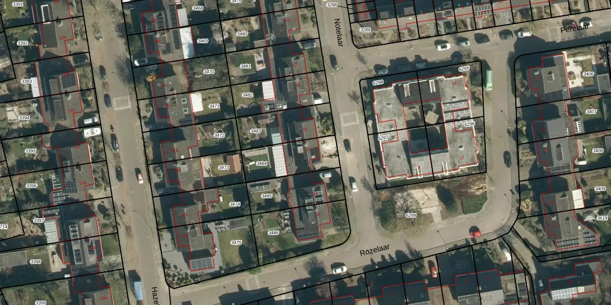 Het perceel waarop Notelaar 18 staat heeft een oppervlakte van 335 m². Dit is een groot perceel. De perceeloppervlakte wordt geregistreerd door het Kadaster. Gedetailleerde informatie over de maten van dit perceel kunt u vinden in het rapport Kadastrale kaart met maatvoering van Notelaar 18.