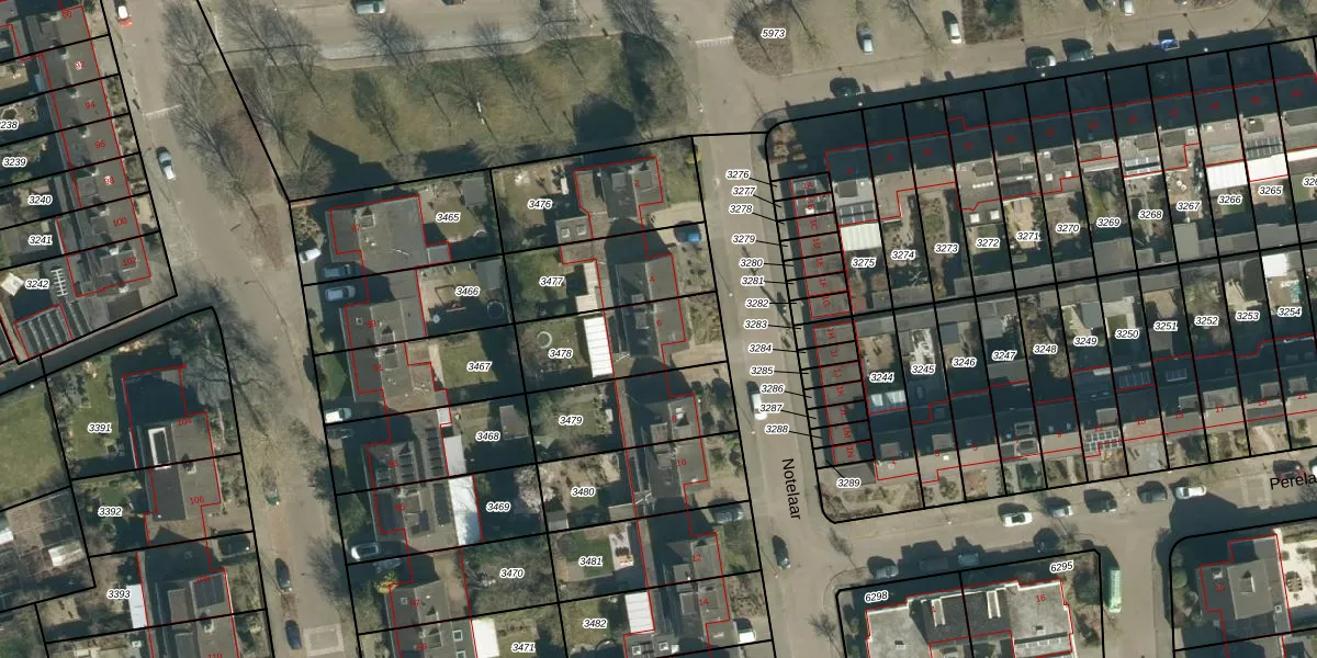 Het perceel waarop Notelaar 6 staat heeft een oppervlakte van 334 m². Dit is een groot perceel. De perceeloppervlakte wordt geregistreerd door het Kadaster. Gedetailleerde informatie over de maten van dit perceel kunt u vinden in het rapport Kadastrale kaart met maatvoering van Notelaar 6.