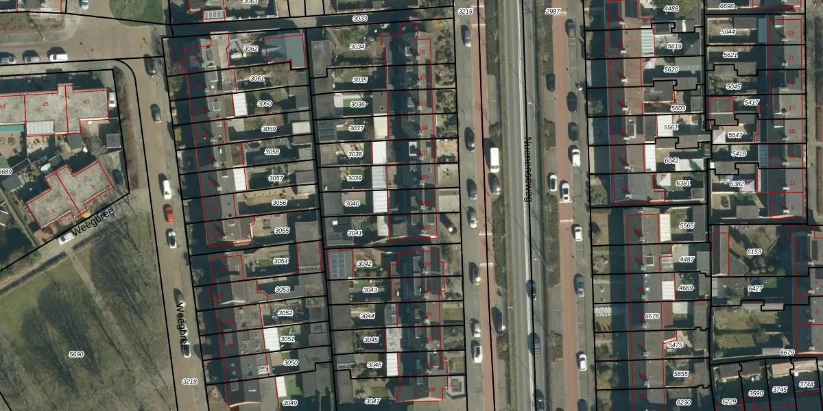 Gebruik de zoekbalk of klik op een perceel voor informatie over de adressen binnen dit perceel.