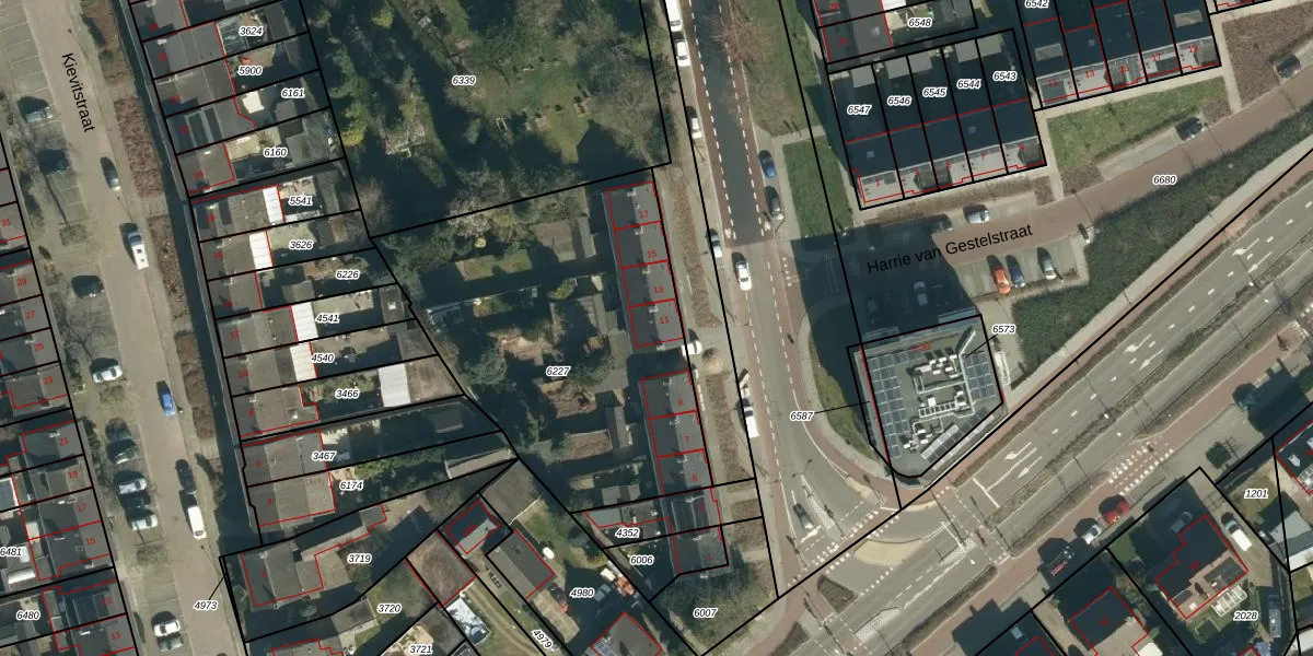 Het adres ligt op het perceel GDP00-C-6227, dat zich in de kadastrale gemeente Geldrop bevindt. De gemiddelde perceeloppervlakte in de kadastrale gemeente Geldrop is 1101,15 m². Dit perceel is met zijn 1668 m² dus groter dan gemiddeld. Het grootste perceel in de kadastrale gemeente is 51,6 ha. Het kleinste perceel heeft een oppervlakte van 0 m². Op het perceel liggen in totaal 7 adressen. De huidige grenzen van het perceel zijn digitaal in de Basisregistratie Kadaster (BRK) geregistreerd op 03-08-2009.