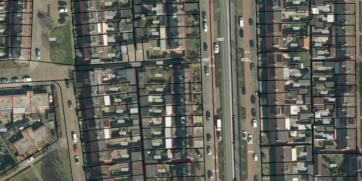 Gebruik de zoekbalk of klik op een perceel voor informatie over de adressen binnen dit perceel.