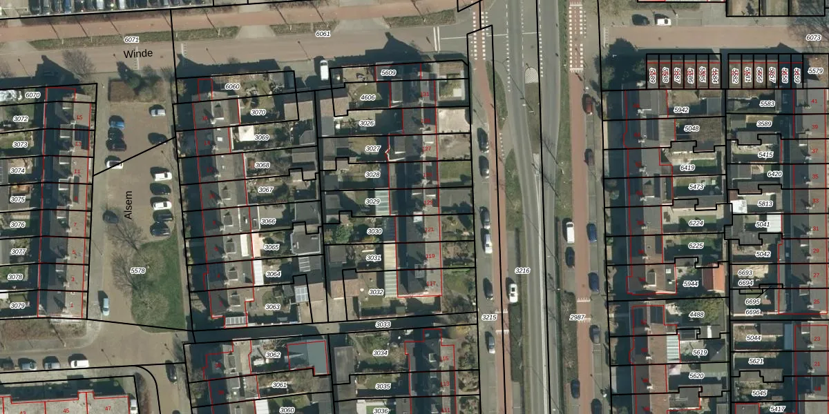 Gebruik de zoekbalk of klik op een perceel voor informatie over de adressen binnen dit perceel.