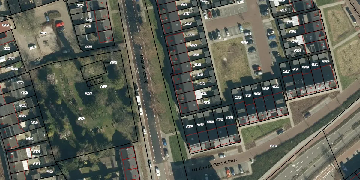 Het adres is gelegen op perceel 6550 in de sectie C en de kadastrale gemeente Geldrop. De kadastrale aanduiding is aldus GDP00-C-6550. De gemiddelde perceelgrootte in Geldrop is 1101,15 m². Dit perceel is kleiner: de perceeloppervlakte bedraagt 128 m². Het kleinste perceel in de kadastrale gemeente is 0 m² groot. De grootste perceeloppervlakte is 51,6 ha. Op het perceel bevinden zich geen andere adressen. De huidige grenzen van het perceel zijn digitaal in de Basisregistratie Kadaster (BRK) geregistreerd op 09-06-2021.